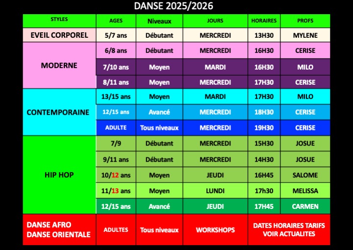 ■ Venez faire votre premier essai, vivre votre premier mois… et pourquoi pas rejoindre l’aventure pour une année complète et participer au spectacle de juin !