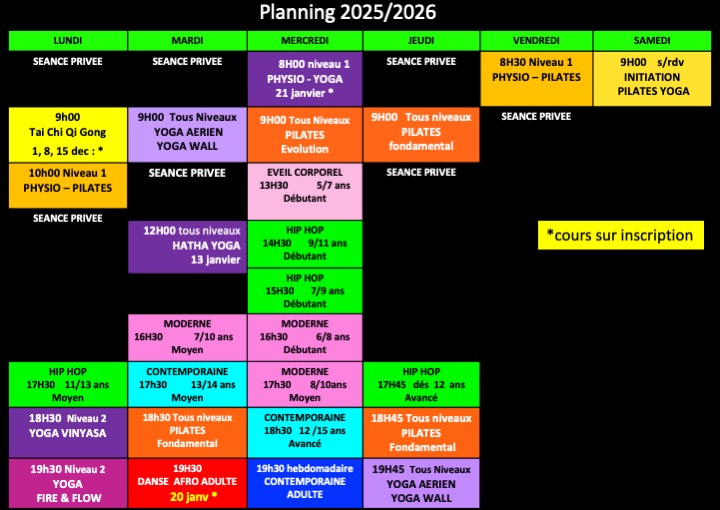 - Danse (éveil – moderne – contemporaine – Hip hop)